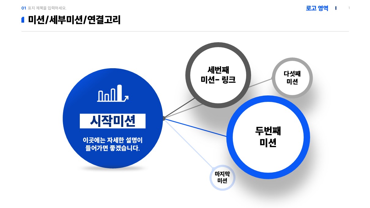이 템플릿은 시작부터 최종 목표까지의 경로를 '미션 연결 구조'로 미리 설계해두었습니다. 어디에 무엇을 써야 할지 고민할 필요가 없습니다. 지정된 칸에 단계별 미션만 채워 넣으세요. 복잡한 선을 긋지 않아도 논리가 살아있는 실행 로드맵이 완성됩니다.
