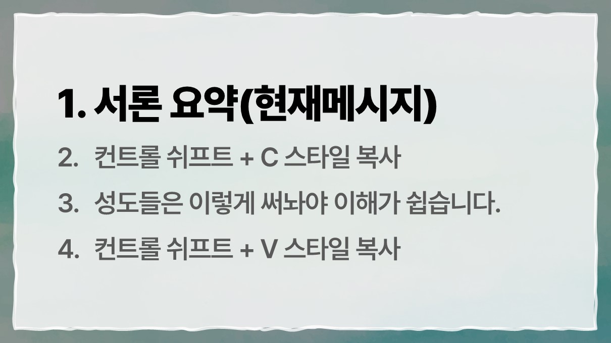 안녕하세요~ 목사님, 전도사님. 제가 만든 피피티를 사용해 주셔서 감사합니다. 세가지만 지켜주세요.