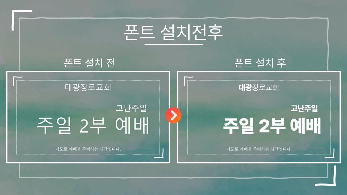 폰트 꼭 설치해야겠죠? 꼭 설치하고 사용하세요~