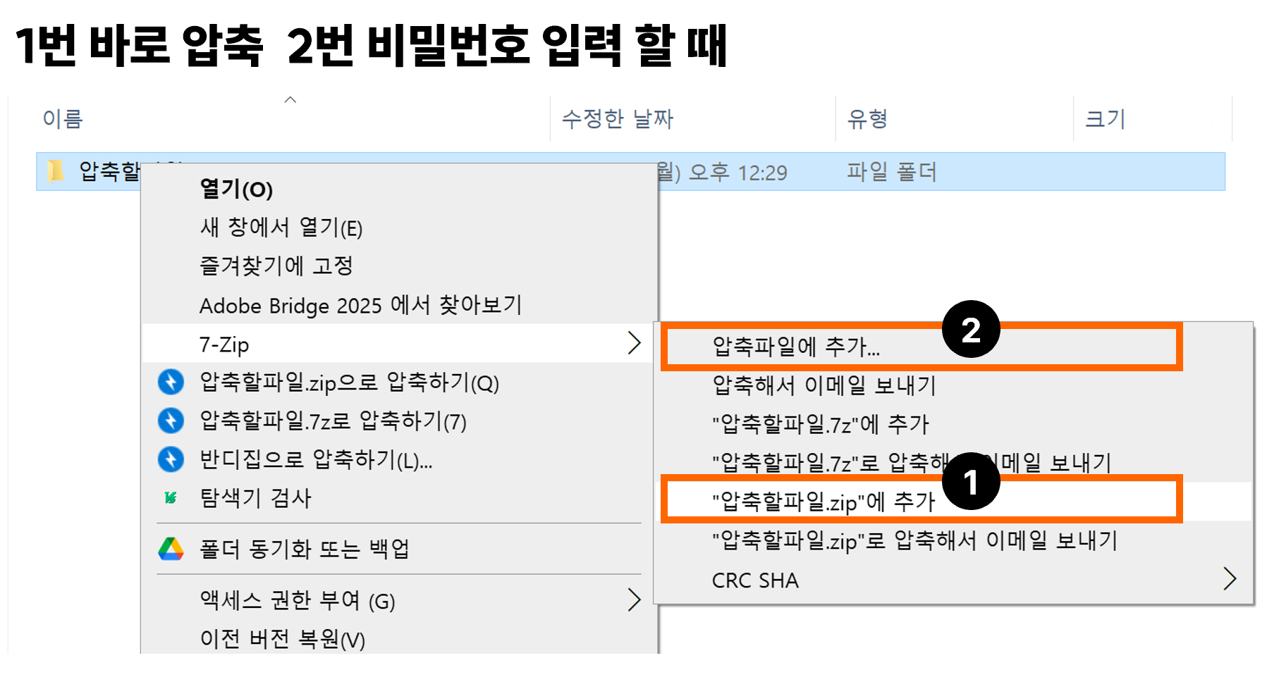 폴더나 파일을 선택하고 오른쪽 마우스 클릭